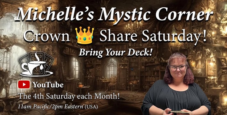 Join us for our Shows: "Tarot Tuesdays", "Michelle's Mystic Corner!", and Sundays - "Psychic Cafe LIVE!" ...with live Chat 💬, Readings and Topics... Tarot, Numerology, Runes, Oracle Cards, Lenormand, The Business of Tarot, and more...