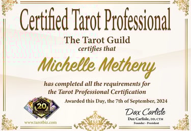 Level 3 - Certified Tarot Master (CTM) - Minimum of 10 years of experience and professional development.