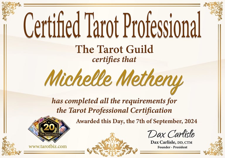 Level 2 - Certified Tarot Professional (CTP) - Minimum of 5 years of experience and professional development.