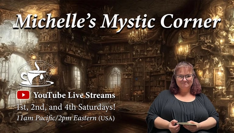 I currently host my own YouTube Live Stream Show on the "Psychic Cafe" channel, called: "Michelle Mystic Corner!"... Join me on the 2nd, 3rd, and 4th Saturdays of the month! Lots of fun Topics, Live Chat 💬, and FREE Mini-Readings!